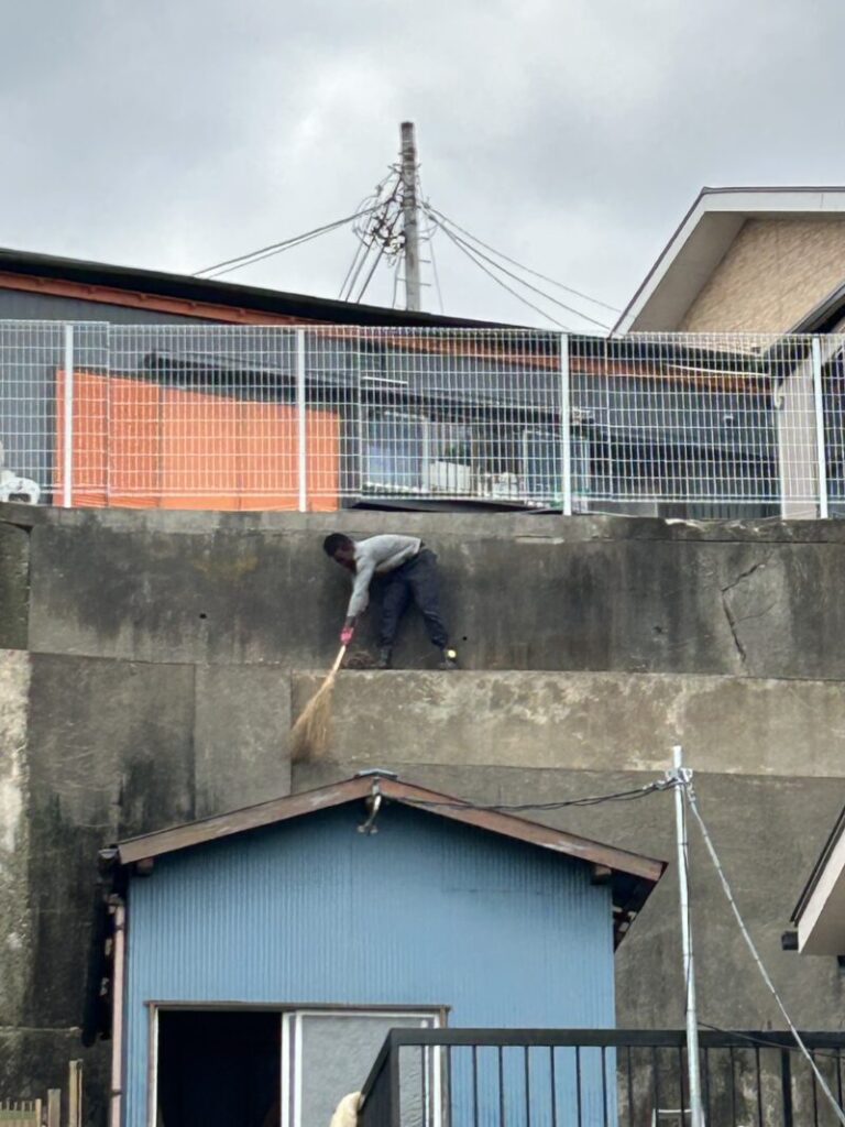 - 屋根表面の清掃: ひび割れ箇所を中心に、補修材の密着性を高めるために、表面の苔や汚れを丁寧に清掃。