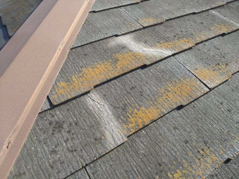現地調査を行ったところ、お客様のお宅は築年数が経過した古いお住まいで、屋根材(スレート瓦やセメント瓦)には以下の深刻な症状が見受けられました。