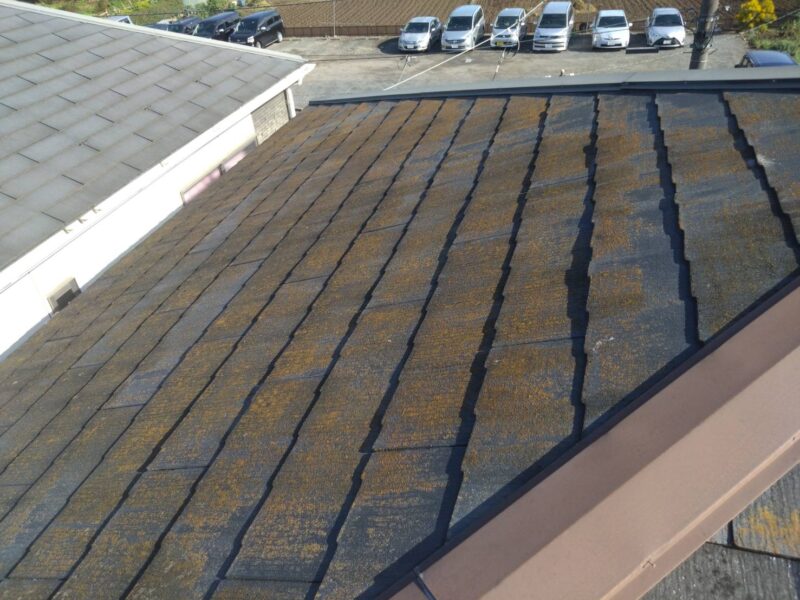 - 苔や藻の発生: 屋根全体に苔や藻が広範囲に付着しており、防水性や耐久性の低下を招いていました。